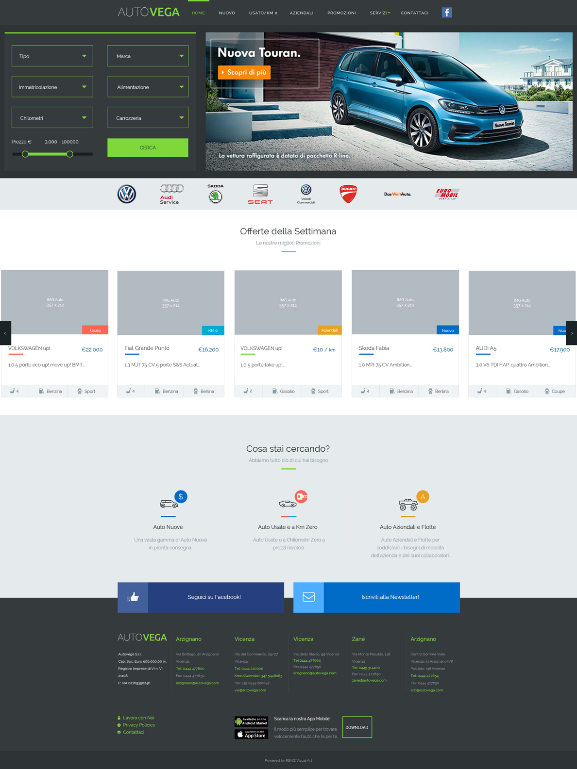 Attraverso lo studio dei materiali esistenti, il confronto con il cliente ed il team di sviluppo, è stato creato prima un mockup esemplificativo per la struttura delle pagine ed il collegamento tra esse. L'integrazione e l'evidenziazione delle varie ricerche auto con la messa a punto dei filtri necessari per l'individuazione del prodotto mirata agli interessi dell'utente.